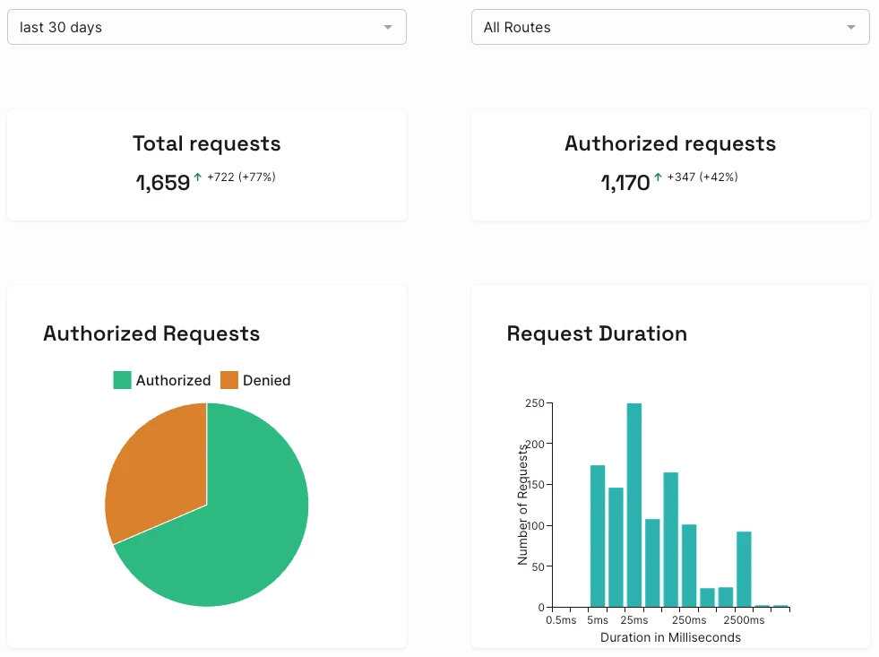 When running Zero-managed mode, Pomerium will now report usage metrics for display in a new Traffic tab in the Zero user interface. This provides a useful visualization of both overall and per-route request rate, size, and duration. It's also fascinating to stare at when Pomerium is doing its job of stopping the bots from getting in!